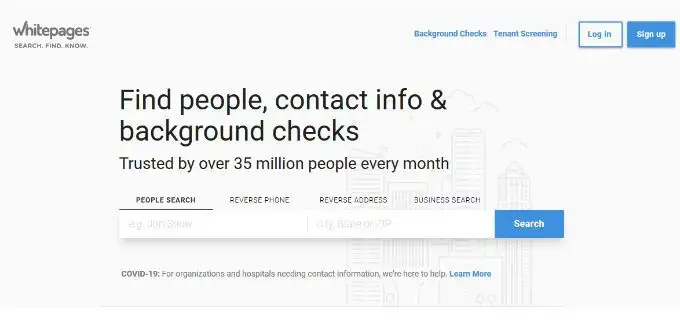 Whitepages không chỉ là một công cụ tìm kiếm người. Nó vượt xa hơn thế để cung cấp cho bạn nhiều hơn là chỉ thông tin nghề nghiệp hoặc xã hội. Bạn có thể nhận dữ liệu cơ bản chi tiết về những người như tên thời con gái, tuổi, số điện thoại (điện thoại cố định và điện thoại di động), địa chỉ và kiểm tra lý lịch như hồ sơ giao thông, hồ sơ tội phạm, xếp hạng lừa đảo / gian lận, hồ sơ tài chính, hồ sơ thế chấp, chi tiết kinh doanh, nghề nghiệp giấy phép và chi tiết tài sản.
