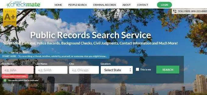 Instant Checkmate là một công cụ tìm kiếm người mạnh mẽ, giống như một dịch vụ tìm kiếm hồ sơ công cộng, nhưng cung cấp các báo cáo toàn diện bao gồm các chi tiết như địa chỉ, thông tin điện thoại, hôn nhân và tài sản, tài liệu tòa án liên quan, tiền sử tội phạm, giấy phép vũ khí và phá sản.