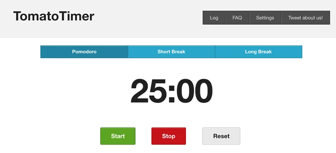 Bộ hẹn giờ Tomato là cách triển khai đơn giản nhất, dễ hiểu nhất của Bộ hẹn giờ Pomodoro trên web. Có ba nút chính: bắt đầu, dừng và đặt lại, mặc dù bạn có thể học các phím tắt nếu bạn thực sự muốn tối ưu hóa năng suất. Không yêu cầu đăng ký và Tomato Timer hoàn toàn miễn phí.