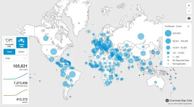 WHO cũng đã bao gồm một chế độ chỉ hiển thị các trường hợp tử vong do COVID theo khu vực và chế độ bản đồ bong bóng cho bạn thấy nhanh quy mô tương đối của các trường hợp theo quốc gia. Nếu bạn cuộn xuống từ bản đồ chính, sẽ có những bảng phân tích dữ liệu được cân nhắc kỹ lưỡng để giúp bạn hiểu những gì đang diễn ra trên phạm vi toàn cầu.