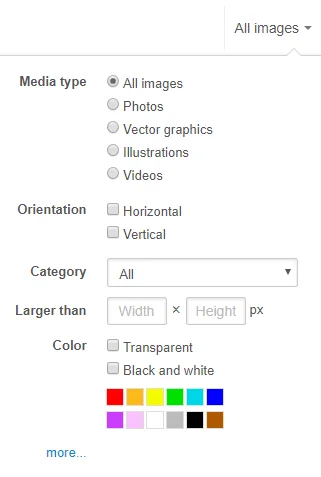 Pixabay có hơn 1 triệu hình ảnh mà bạn có thể tải xuống miễn phí. Điều tôi thích ở Pixabay là họ có một số tùy chọn tìm kiếm tốt hơn Pexels. Bạn có thể tìm kiếm theo loại phương tiện, hướng, danh mục, màu sắc và theo kích thước.