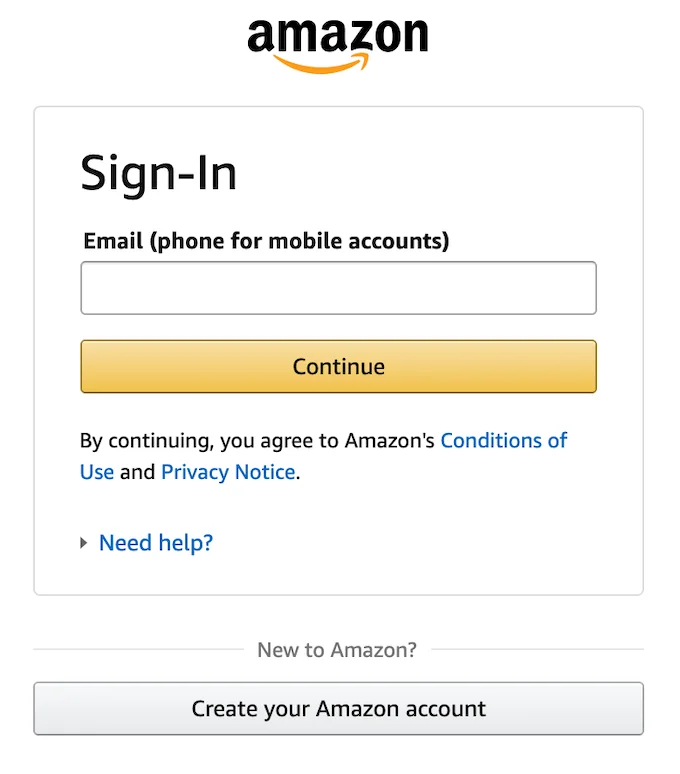 - Đăng nhập nếu bạn đã đăng ký tài khoản Amazon hoặc tạo tài khoản Amazon mới.