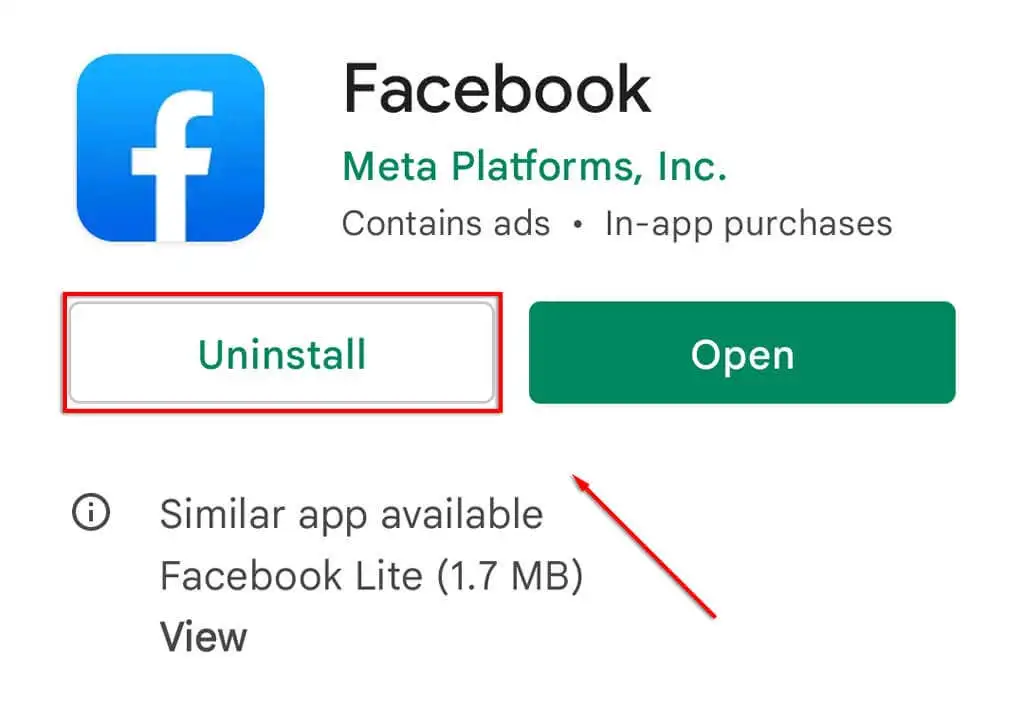 Gỡ cài đặt và cài đặt lại ứng dụng Facebook sẽ giúp khắc phục mọi sự cố phần mềm tiềm ẩn với ứng dụng. Để cài đặt lại Facebook, hãy chạm và giữ biểu tượng ứng dụng và chọn Loại bỏ hoặc Gỡ cài đặt. Sau đó, đi đến cửa hàng ứng dụng, tìm kiếm Facebook và chọn Cho phép hoặc Tải xuống.