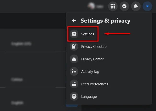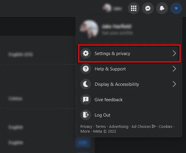 - Nhấn vào mũi tên hướng xuống và chọn Cài đặt & Quyền riêng tư.