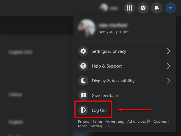 Nhiều người dùng Facebook báo cáo rằng chỉ cần đăng xuất và đăng nhập lại sẽ khắc phục được sự cố của họ với Marketplace không hoạt động. Để làm như vậy trên trình duyệt web, hãy chọn mũi tên hướng xuống ở góc trên bên phải của màn hình, sau đó chọn Đăng xuất. Trên ứng dụng, hãy chọn biểu tượng bánh hamburgersau đó cuộn xuống và chọn Đăng xuất. Sau đó, đăng nhập lại và xem Marketplace có hoạt động hay không.